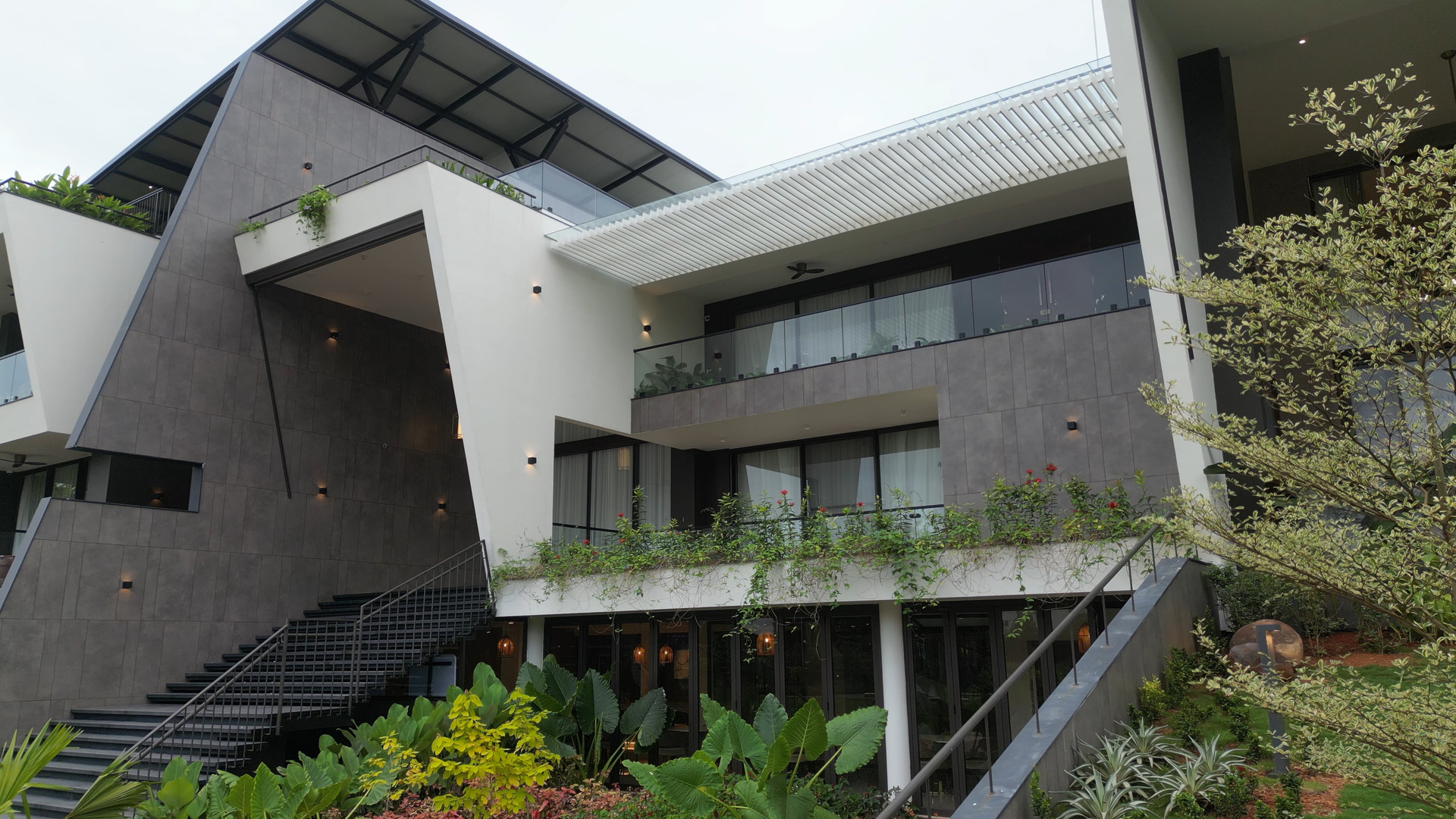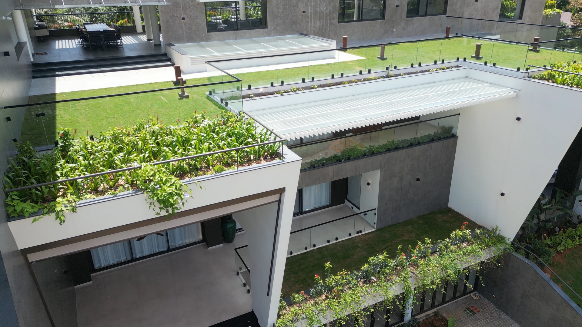 Green Interio Fusion recently concluded work on a vast 30,000 sq. ft. opulent home in Mathilakam, featuring magnificent glass canopy applications and custom-made pergola frameworks that amplify the estateโs magnificence. This commission showcases our unparalleled capacity to fuse architectural artistry with practical outdoor design.
